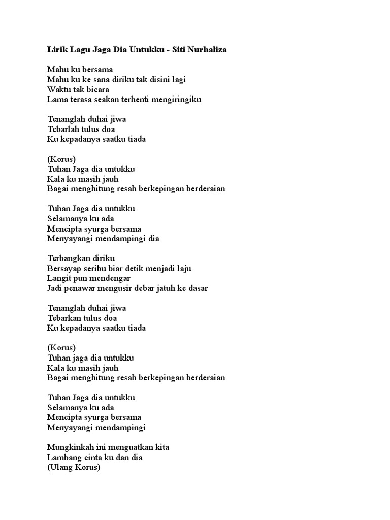 Lirik Jaga Dia Untukku Tetaplah di tempatmu Jangan beranjak pergi Aku kan kembali Meskipun ini perih Kuharus tetap pergi Tinggalkanmu disini sendiri Hapus air matamu-Aku pergi tinggalkan kamu sebentar Hapus air matamu Kau wanita hebatku Tuhan tolong jaga dia untukku Sekali ini saja Tuhan jaga dia untukku Aku mohon jaga dia untukku Tetaplah di. Mahu ku bersama Mahu ku kesana Diriku tak di sini lagi. Lirik Lagu Jaga Dia Untukku Fiena Mentor papar berkaitan - pada 892018 - jumlah.
